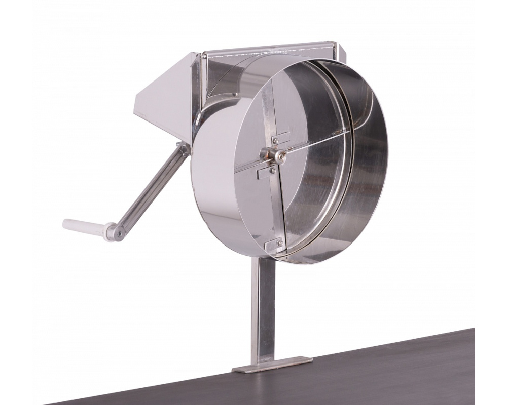 - Поставьте ёмкость под выходным желобом для нашинкованной капусты.