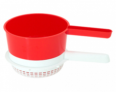 Предлагаем Вам сыродельницу, перфорированную полимерную двухэлементную (дуршлаг и ковш с ручками), для адыгейского сыра, ориентировочной массой примерно 200-300 г.