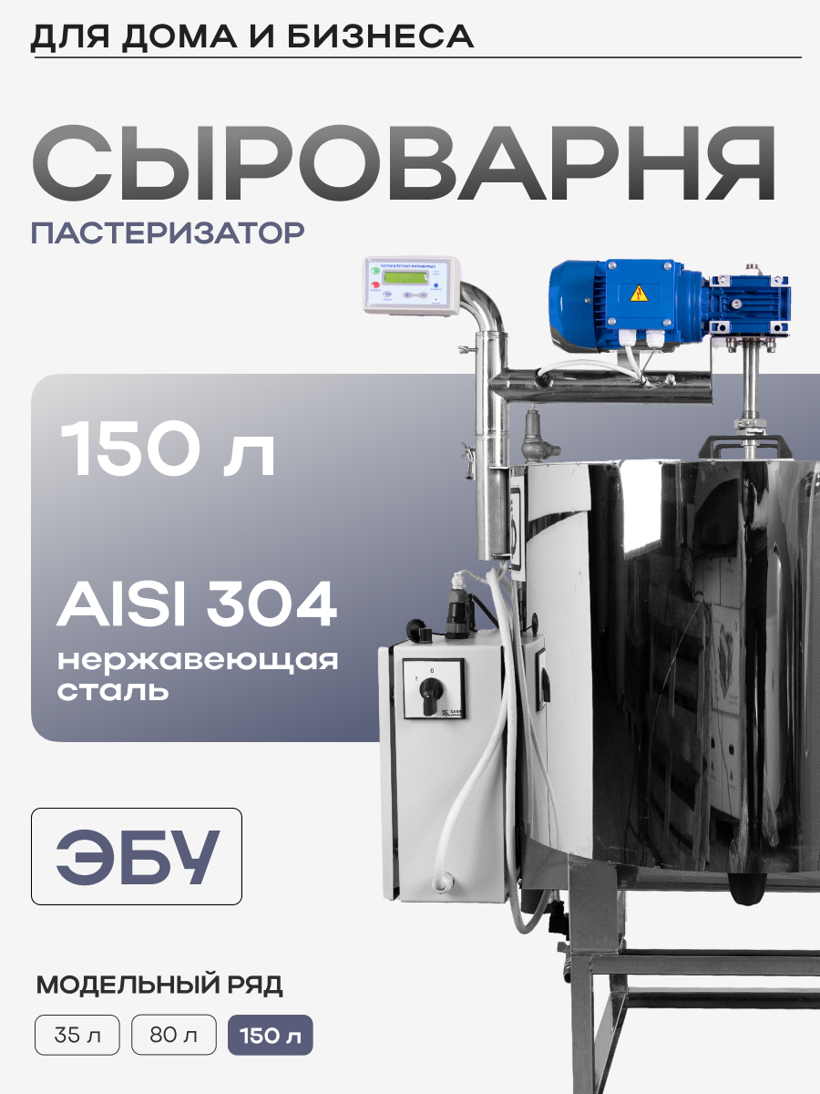 Полуавтоматическая сыроварня-пастеризатор объемом 150 литров (артикул СП150.02.00.000) для организации собственной мини-сыроварни, производства различных видов сыра.